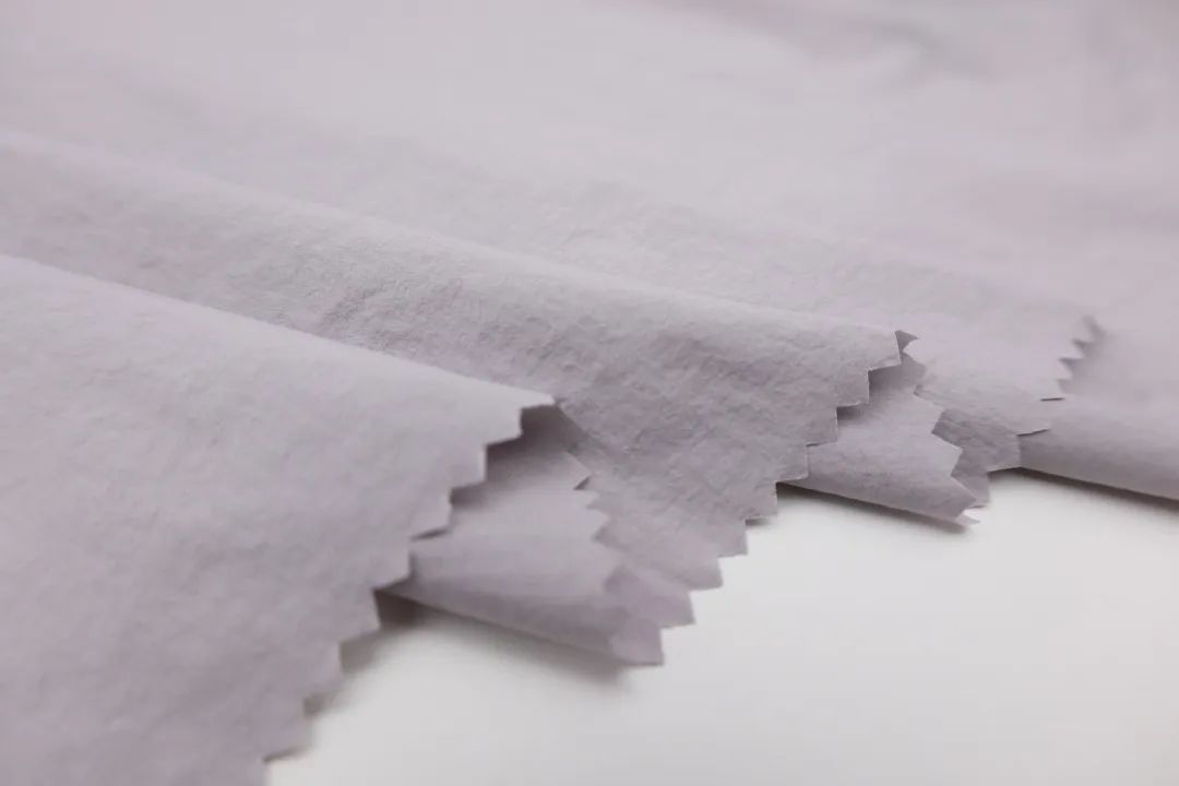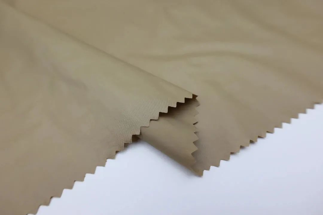 采用DTY低彈尼龍為原料,440超高密度,手感不僅密實飽滿,且具有優良的防絨性;布面呈現微騶肌理感,更具層次和立體感;后整理采用溢流染色工藝,德國進口機壓光,布面觸感極致細膩,故被尊為尼龍中的“超貴族”產品。
