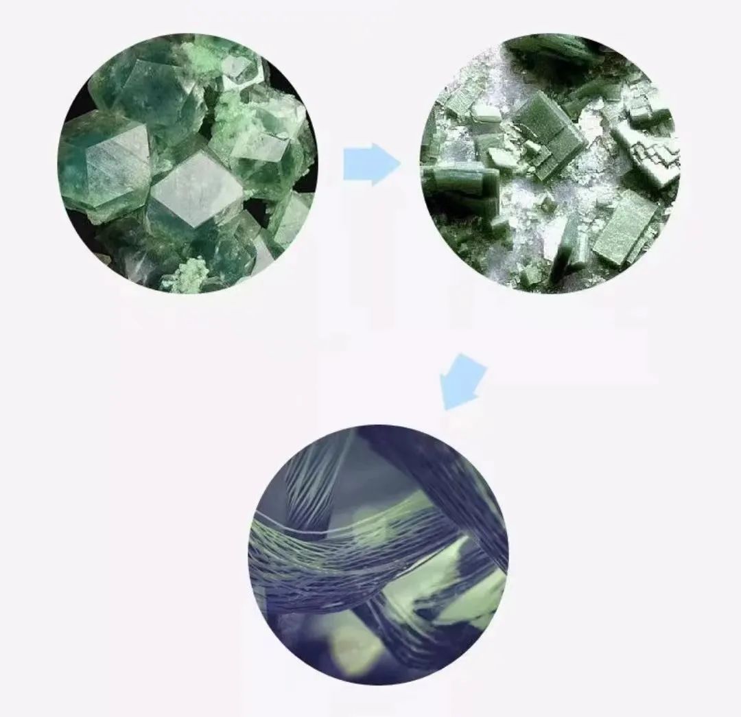 玉石纖維是將“亞納米級”的玉石粉末混入紡絲熔體中,經紡絲加工而成。