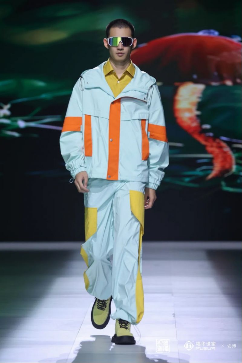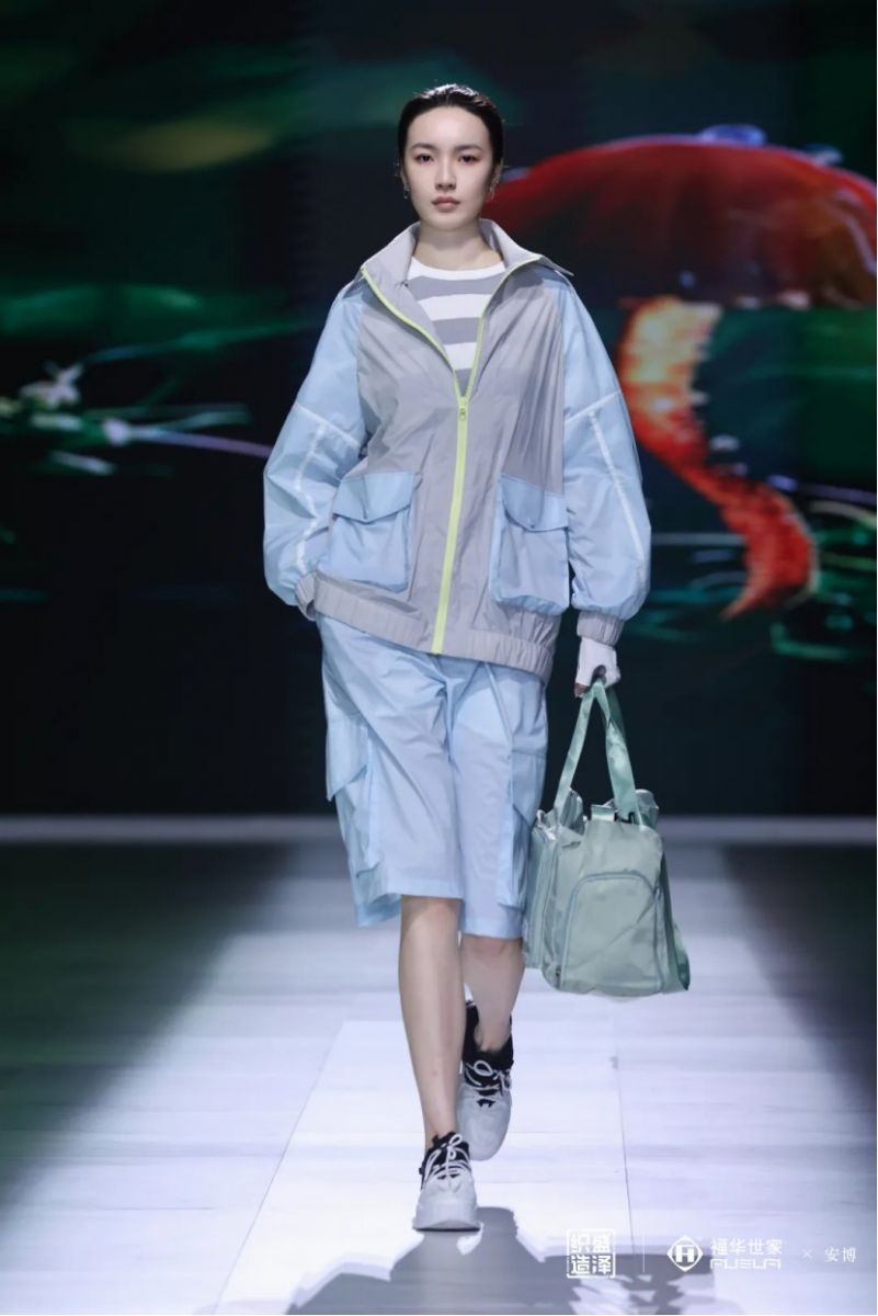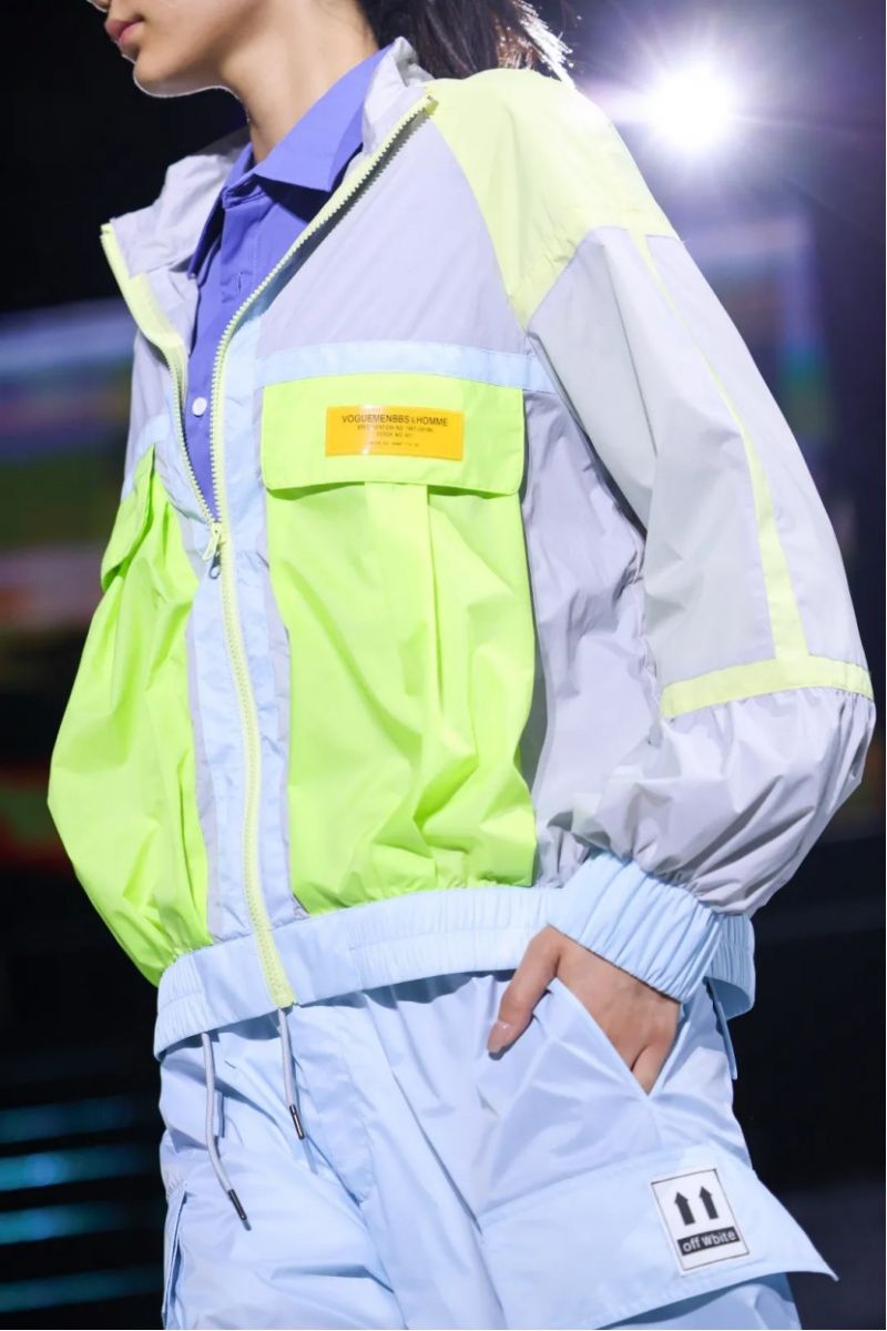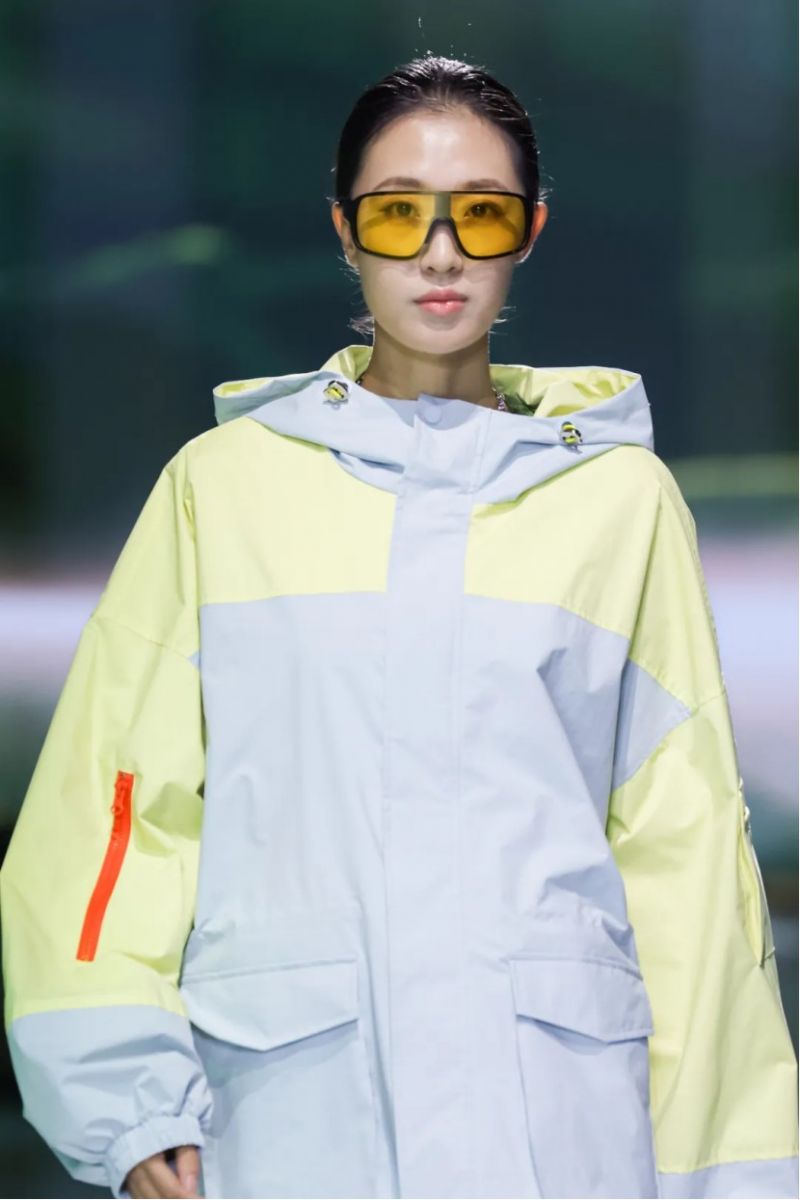 本系列設(shè)計色彩取之于自然萬物中的天、地、水、植,例如嫩芽黃、萊姆綠、香水藍(lán)等等。同時在面料上的選擇也考慮到了不同溫度環(huán)境下的穿著體驗,包括不同克重的錦綸、滌綸面料,同時考慮到了環(huán)保因素,一部分漁網(wǎng)回收的錦綸同樣運用到了此系列中。通過色彩與面料的巧妙搭配,讓本系列整體風(fēng)格顯得明快自然、舒適閑逸,通勤與戶外的有機結(jié)合,也讓此類輕戶外風(fēng)格更能得到當(dāng)下消費者的青睞。