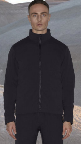 經向采用28D半消光滌綸低彈絲,緯向采用28D半消光滌綸低彈絲,經后整理貼PTFE膜加單面針織布的方式制作。面料具有防水的功能,該面料可設計制作成商務夾克,采用立體分片式剪裁技術,創造能夠展現體形的一指寬完美貼身距離,充分映射出絕佳身型,且能夠最大限度保存體溫氣流;簡約設計,防風防潑水,利用合成棉填充,保暖舒適,簡潔立領設計加上彈性編織袖口;隱藏式口袋設計美觀大方。